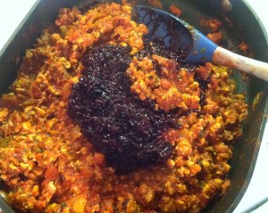 Stuffed bell pepper trio with ground turkey, black rice, cilantro and bourbon