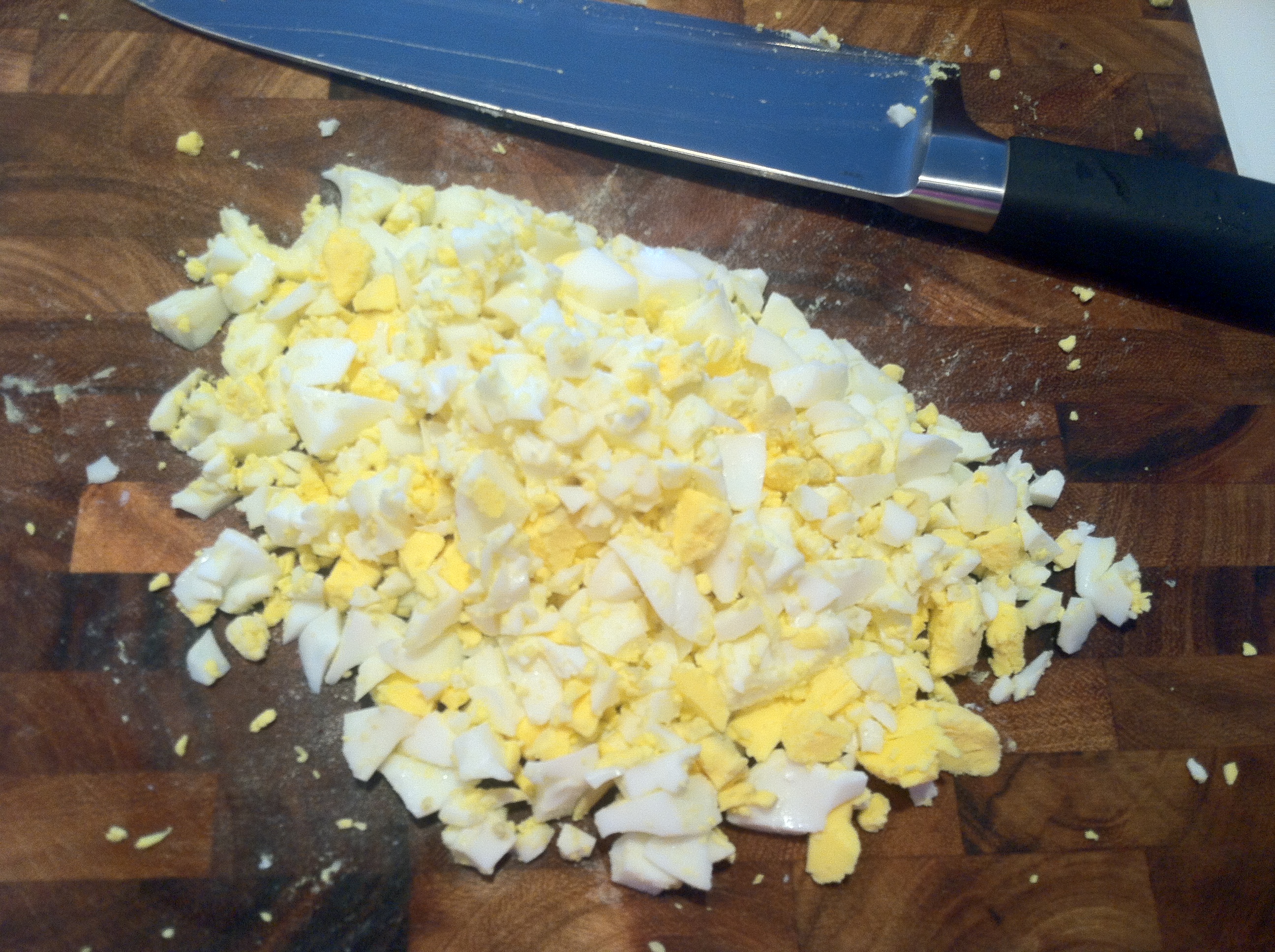 mayo-less egg salad with sundried tomatoes and olives